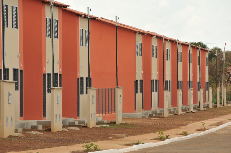 Condomínio residencial horizontal popular com unidades habitacionais unifamiliares tipo sobrado e casas adaptadas PNE, a ser construído com 120 unidades habitacionais mais equipamentos comunitários 01 salão de festas e play ground. Os 112 sobrados serão edificado em alvenaria estrutural possui área construída de 44,66m², com padrão popular de acabamento, contendo no pavimento térreo sala, cozinha, área de serviço, hall e banheiro, e no pavimento superior, circulação e 2 quartos. Já as 08 casas adapatadas a PNE serão construida em alvenaria convencional e possuem área construída de 41,71 com padrão popular de acabamento, contendo no pavimento térreo sala, cozinha, área de serviço, circulação, banheiro e 2 quartos.